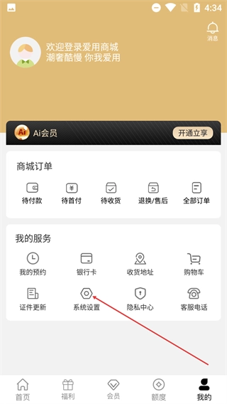 在首页点击底部的【我的】选项,就能进入个人中心页面,查看订单、服务等与个人相关的功能入口。