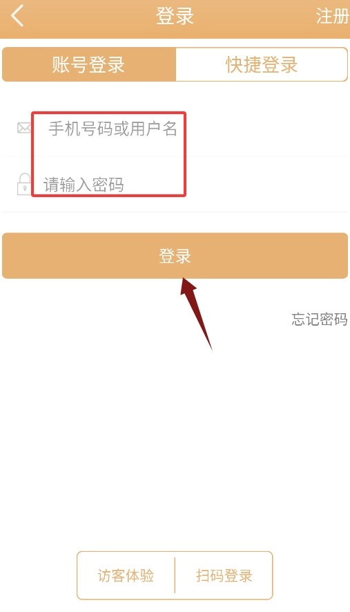回到登录页面,输入手机号或用户名以及密码,就能完成登录操作。