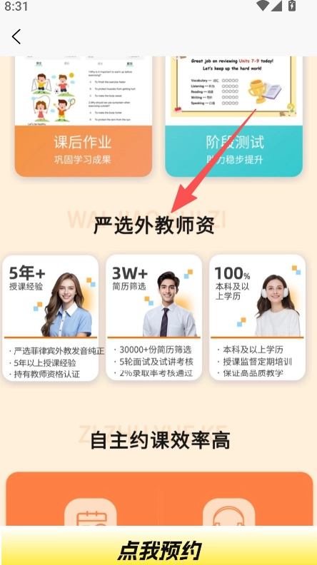 平台支持师资信息查看功能,用户可在课程详情页面,了解严选外教师资的相关资质与要求。