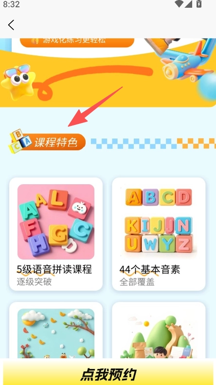 我们为用户提供了课程特色查看功能,在课程页面中,大家可以浏览5级语音拼读等相关的课程特色内容。