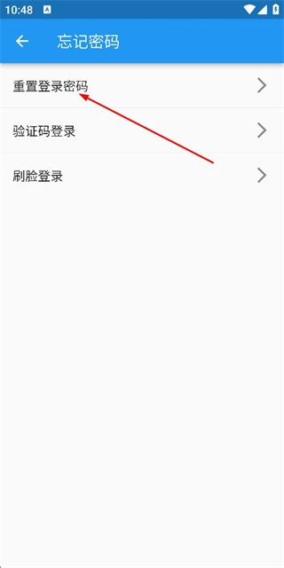 在忘记密码页面选择重置登录密码的选项,即可进入密码重置页面。
