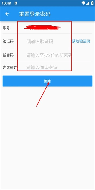 在重置登录密码的页面填写好相关信息后,点击确定按钮即可完成密码重置操作。