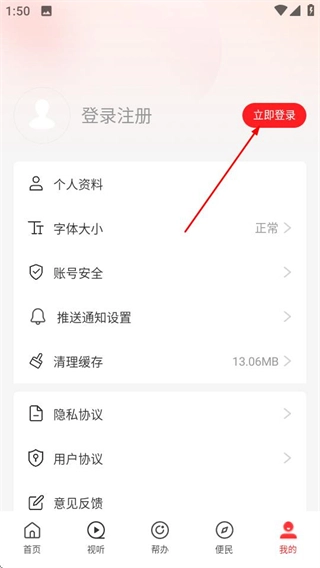 在个人中心页面,点击“立即登录”按钮,就能进入免密登录页面。