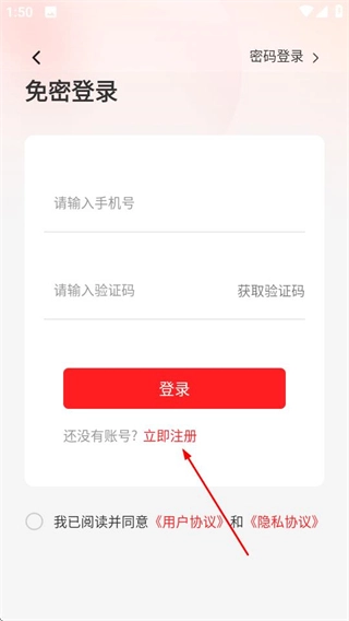 在登录页面,点击立即注册选项,可进入注册页面。