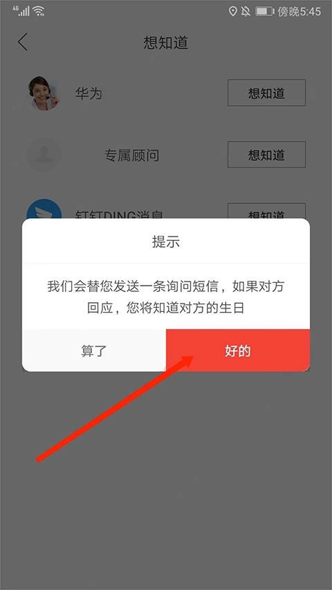 当出现提示时,点击“好的”选项,等对方给出回复,就能了解到它的生日信息了。