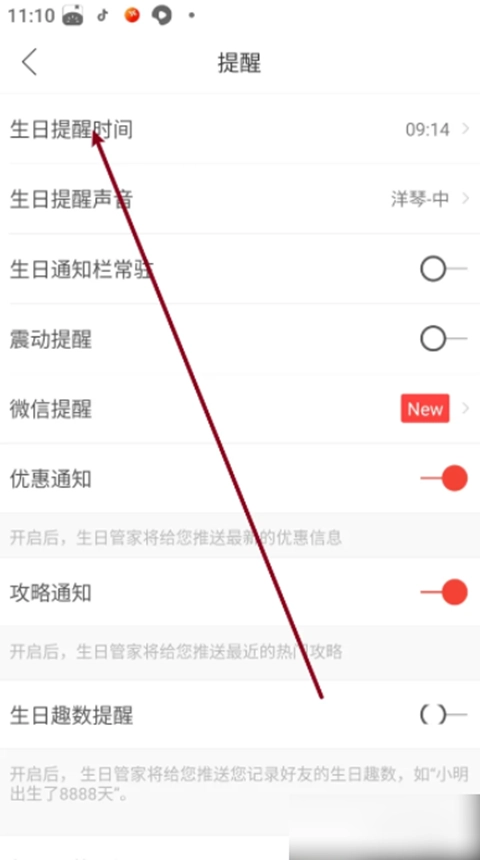 步骤三:进入提醒设置界面后,找到“生日提醒时间”选项,根据你的需求设置具体的提醒时间;此外,你还能进行其他个性化设置,这样就能确保到了指定时间不会忘记相关事项。