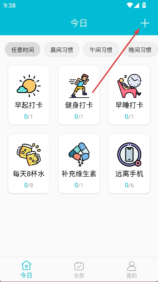 在主导航栏的“今日”菜单下,点击屏幕右上角的“+”按钮,就能进入添加习惯的界面。