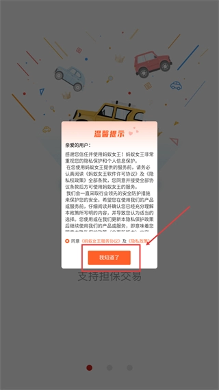 在【温馨提示】环节,请先确认已勾选协议同意项,随后点击【我知道了】按钮,即可继续后续操作。