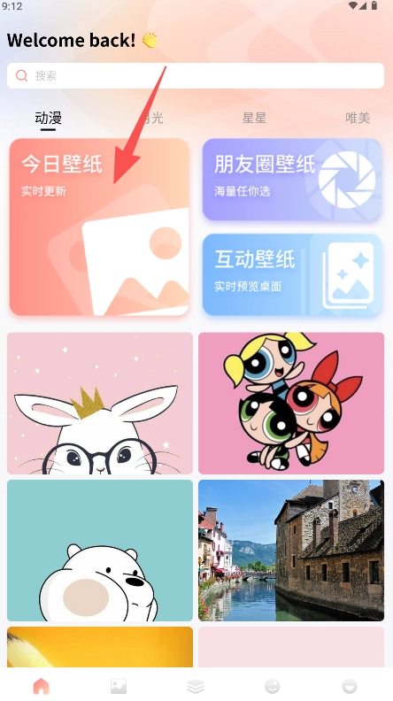 在首页浏览“今日壁纸”点击进入板块。