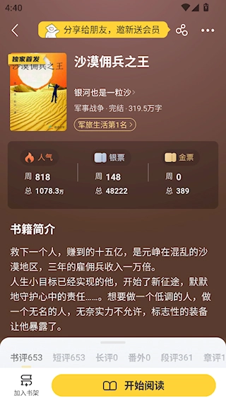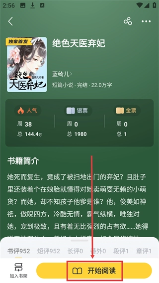 在详情页浏览完简介后,点击页面底部的【开始阅读】按钮,即可进入该书的阅读界面。