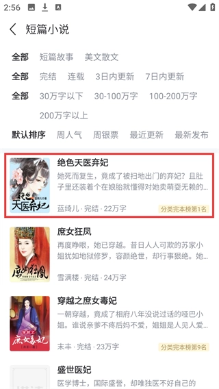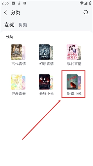 在分类页面选择【短篇小说】分类,进入对应的书籍列表页面,查看该类别下的书籍。