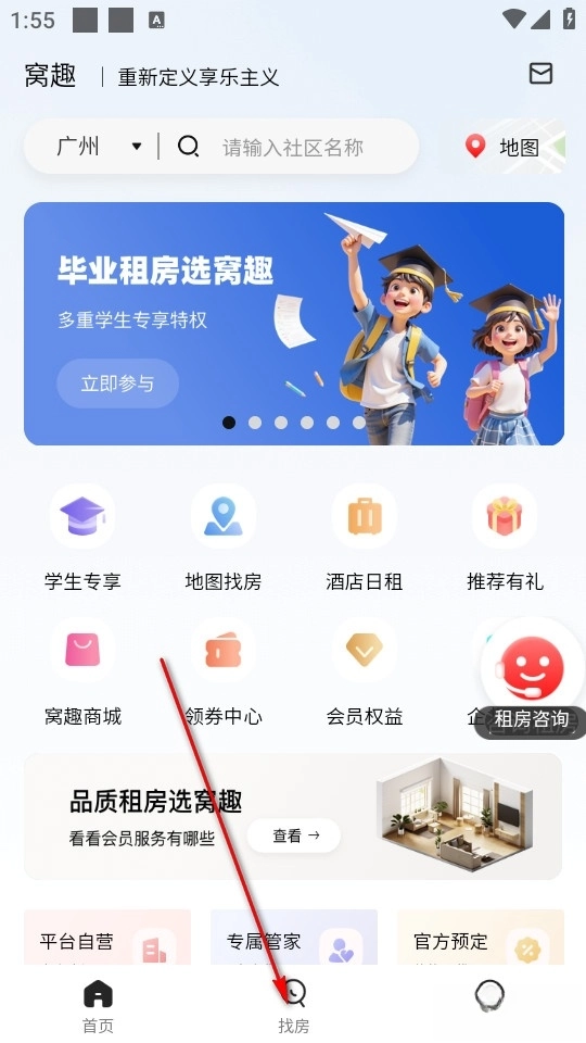 窝趣WOWQU是由窝趣WOWQU旗下青年公寓品牌打造的品质公寓综合租赁平台,秉持“我·享·趣”的核心价值主张,倡导“重新定义享乐主义”,深度契合年轻一代对舒适居住与趣味社交兼具的新享乐生活方式追求。平台汇聚海量高品质真房源与优质生活配套,所有房屋均为房东直租,提供正规合同与无接触签约服务,助力快速入住。无论偏好何种户型,用户都能依据地段、交通、周边设施及价格等维度,精准筛选出心仪好房,操作体验十分人性化。