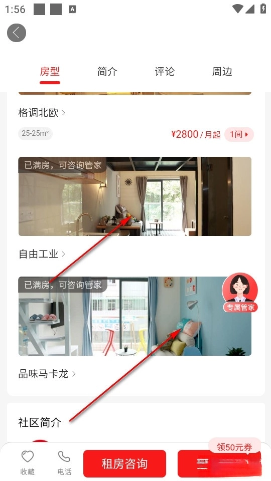 点击对应的公寓房间就能查看详情,右下角可以预约看房。