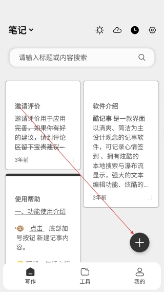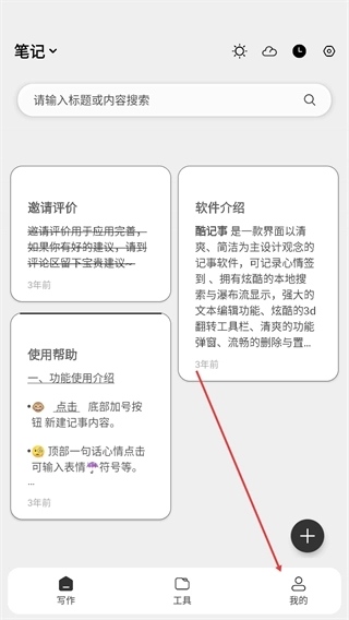 在酷记事的主界面中,点击底部导航栏里的“我的”选项,即可进入个人页面。