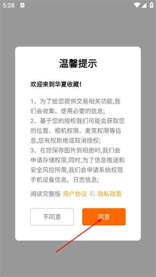 当温馨提示弹窗出现时,先仔细阅读其中的隐私政策内容,之后点击同意按钮即可。