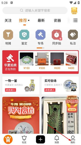 在华夏收藏的首页,找到页面底部的“我的”选项并点击,就能进入到与登录相关的页面了。