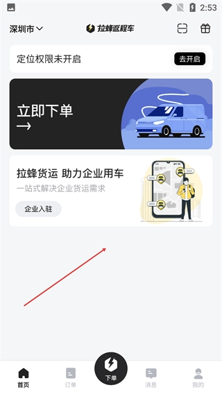 完成信息提交并进入首页后,您既可以点击“立即下单”来发起货运需求,也能够申请企业入驻。