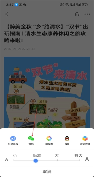 爱清水怎么查看与分享旅游资讯