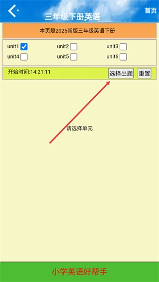 勾选【unit1】对应的复选框,接着点击【选择出题】按钮,就能生成该单元的单词自测题目。