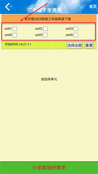 进入单元选择界面后,会呈现【unit1】至【unit6】的选项,需要选择对应的单元才能生成自测试题。