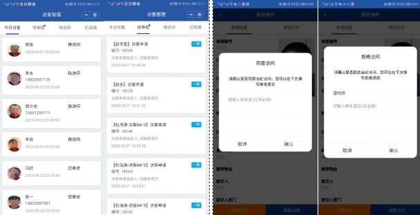 在访客管理功能里,用户不仅能查看所有访客的相关信息,还可以对访客的预约请求进行处理操作,具体包含同意其访问申请和拒绝其访问申请这两项内容。