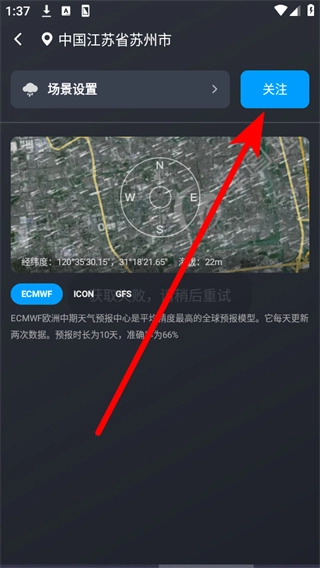 在城市页面的右上角点击“关注”按钮,就能完成该城市地图的添加操作。