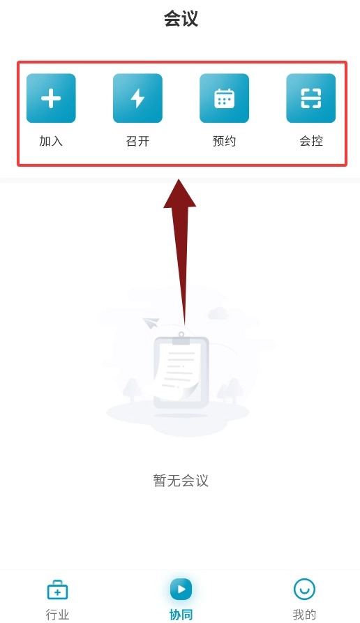 协同界面具备会议加入、发起、预约以及会控管理等功能。