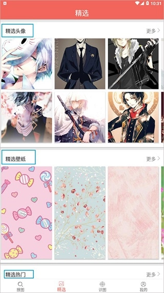 在主界面的精选板块中,你可以搜索头像、壁纸以及热门图片。