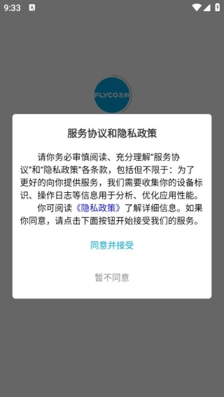 安装软件后将其打开,会弹出服务协议与隐私政策,点击同意即可。