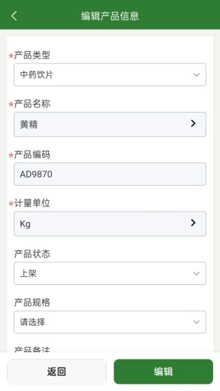 企业可自主编辑产品的类型、名称、编码、规格等信息,自行设置上架状态,轻松实现产品数据的高效管理。