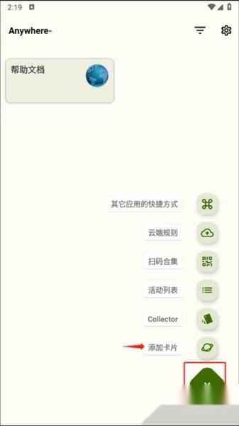 点击主界面右下角的加号图标,点击添加卡片