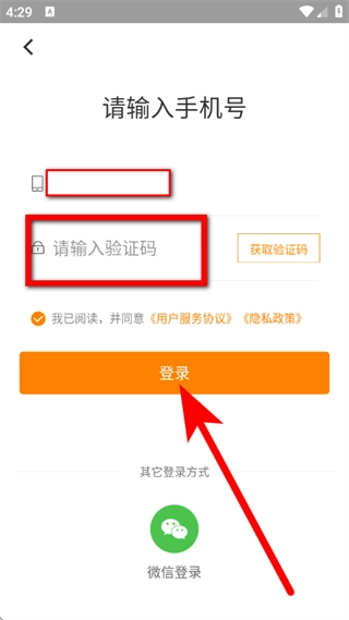 在个人中心页面,点击登录,进入手机号登录页面。