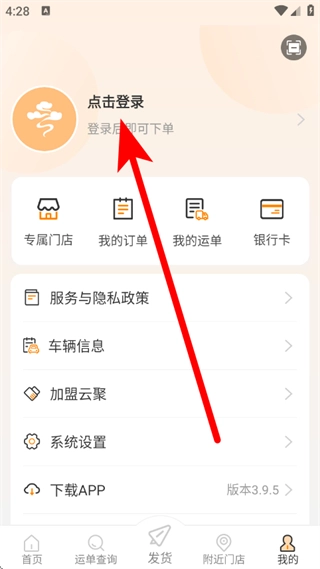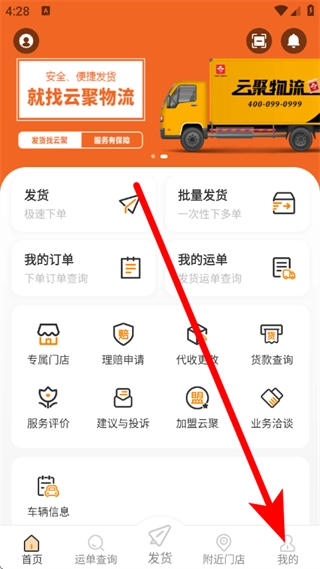 在云聚物流的首页,点击底部的“我的”选项,即可进入个人中心页面。