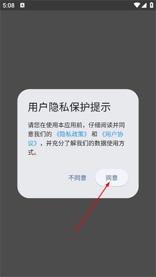 在用户隐私保护提示弹窗中点击“同意”按钮后,即可进入登录页面。