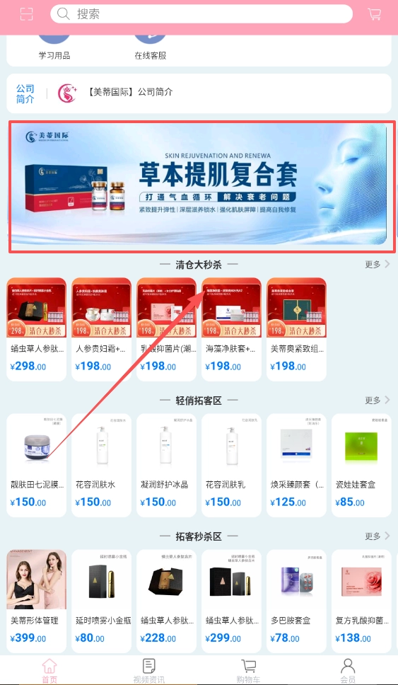 点击“公司简介”即可查看美蒂国际的详细介绍,“草本提肌复合套”等主打产品的功效与特点也展示得十分清晰。
