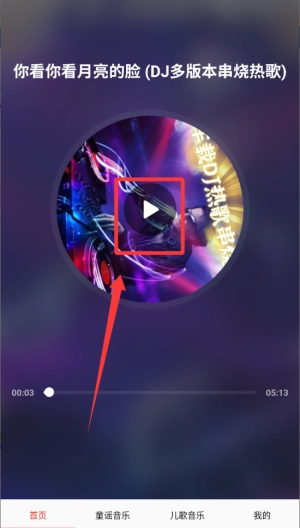 进入听歌页面后点击中间的三角形开始播放。