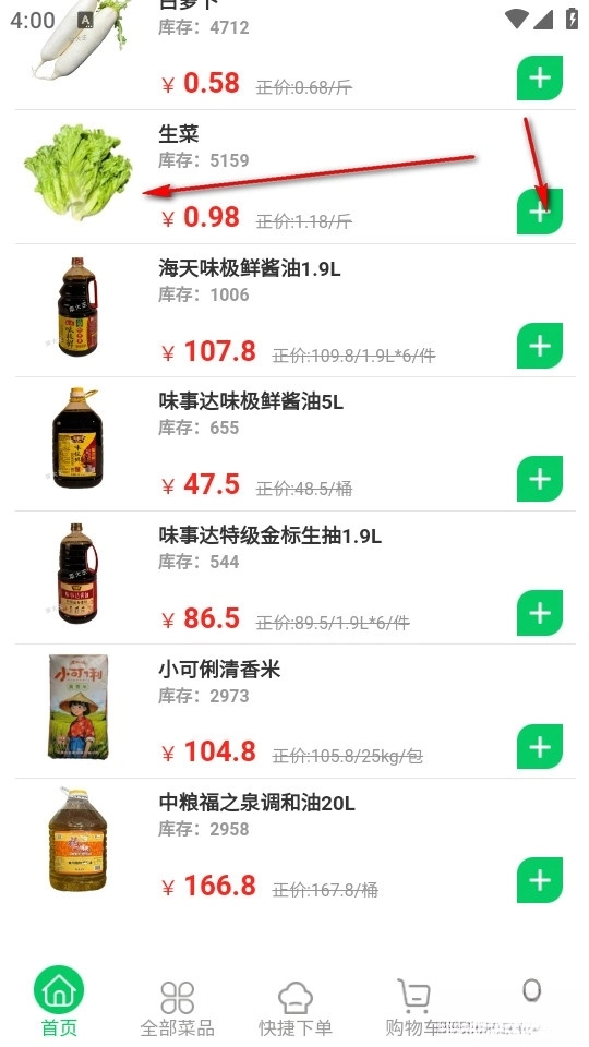 找到所需食材后,可点击进入商品详情页;也能直接点击右侧的加号按钮快速完成下单。