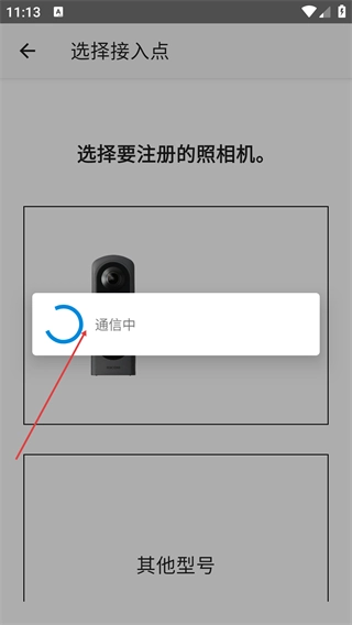 选定相机型号后,页面会呈现【通信中】的状态提示,此时需要耐心等待应用程序和相机成功建立通信连接,这样后续的各项操作才能顺利进行。