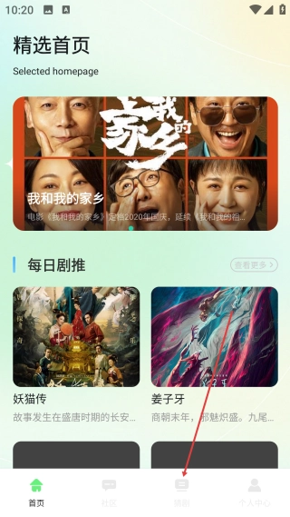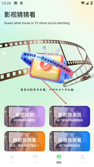进入精选首页后,点击底部的【猜剧】选项,即可进入影视猜猜看的功能选择页面。