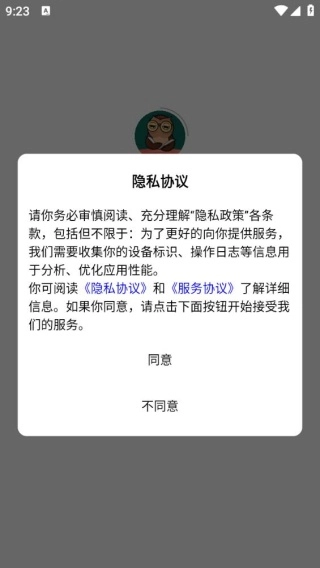 安装软件后打开,弹出隐私协议,点击同意。