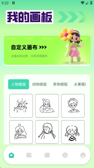 首页将提供各类模板,同时具备多样化的自定义画布功能。