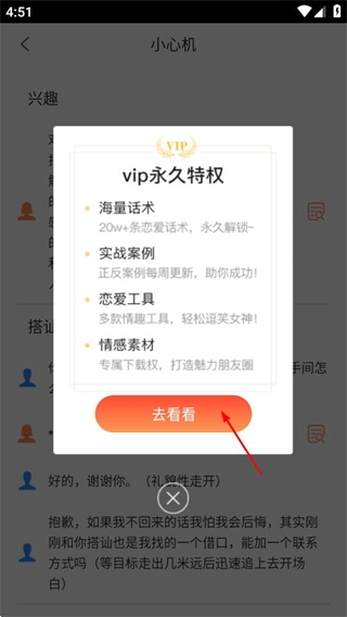 在VIP永久特权弹窗里,点击“去看看”按钮,就能进入VIP服务页面。