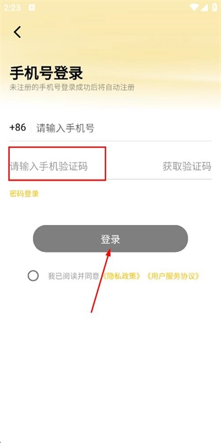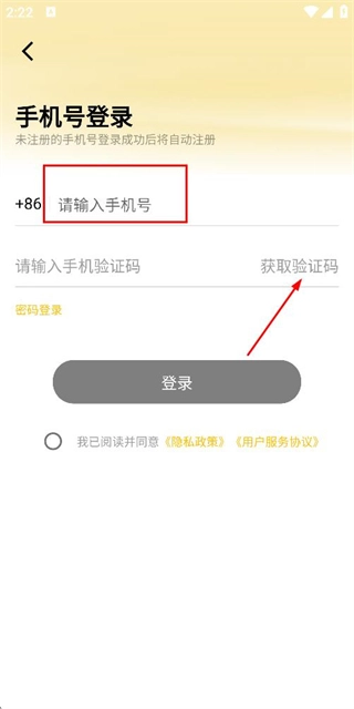 在登录页面输入手机号,勾选相关协议后,点击“获取验证码”按钮。