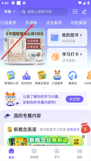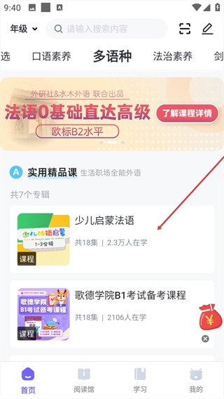 提供权威分级阅读,北外专家微课,增进语言素质。