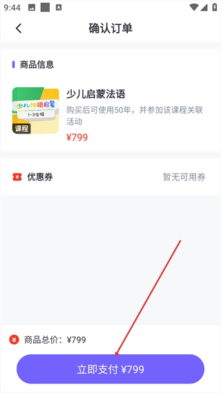 进入确认订单页面后,点击【立即支付】按钮,即可完成课程报名流程。