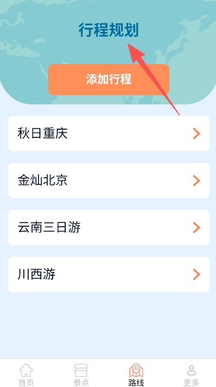 进入路线页面后,既可以添加新的行程,也能查看已有的各类旅行行程。
