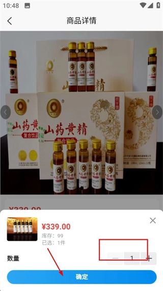 在数量选择界面,确认好数量后点击确定按钮,即可完成购买操作。