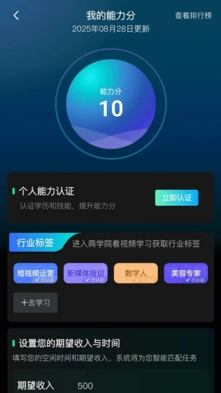 在我的能力分页面里,既能查看最新的能力分情况,也能进行个人能力认证。
