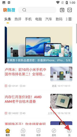 在“快科技”的首页,找到底部导航栏中的“我”选项并点击,即可进入个人中心页面。