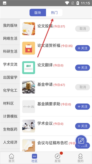 点击顶部的【热门】标签,即可切换到热门内容的展示板块。